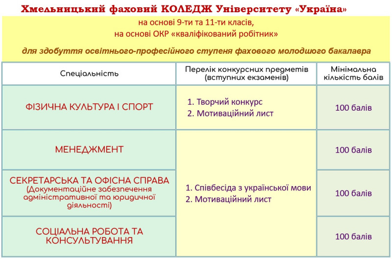 Спеціальності - Коледж 2025