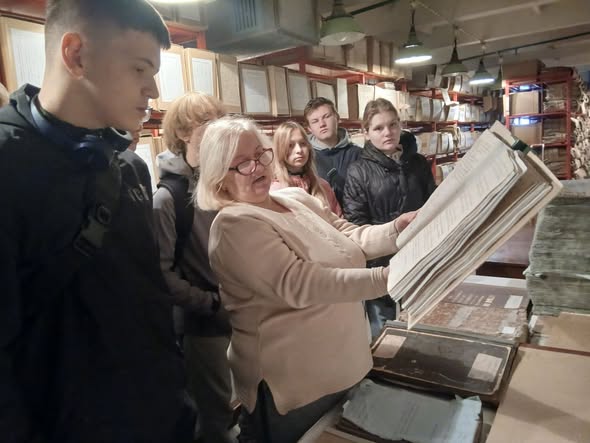 Здобувачі освіти Хмельницького фахового коледжу Університету «Україна» спільно з викладачем історії Олександром Атаманчуком у Державному архіві Хмельницької області.